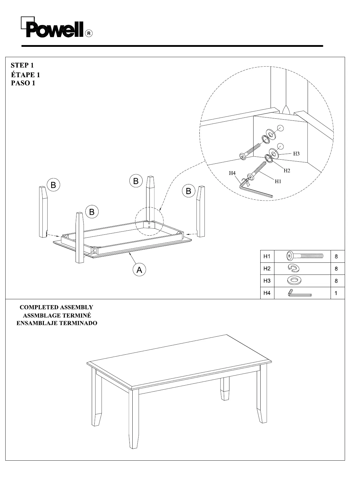 Powell Jane - Assembly Instructions; Step 1 Assembly Guide; Completed Assembly View