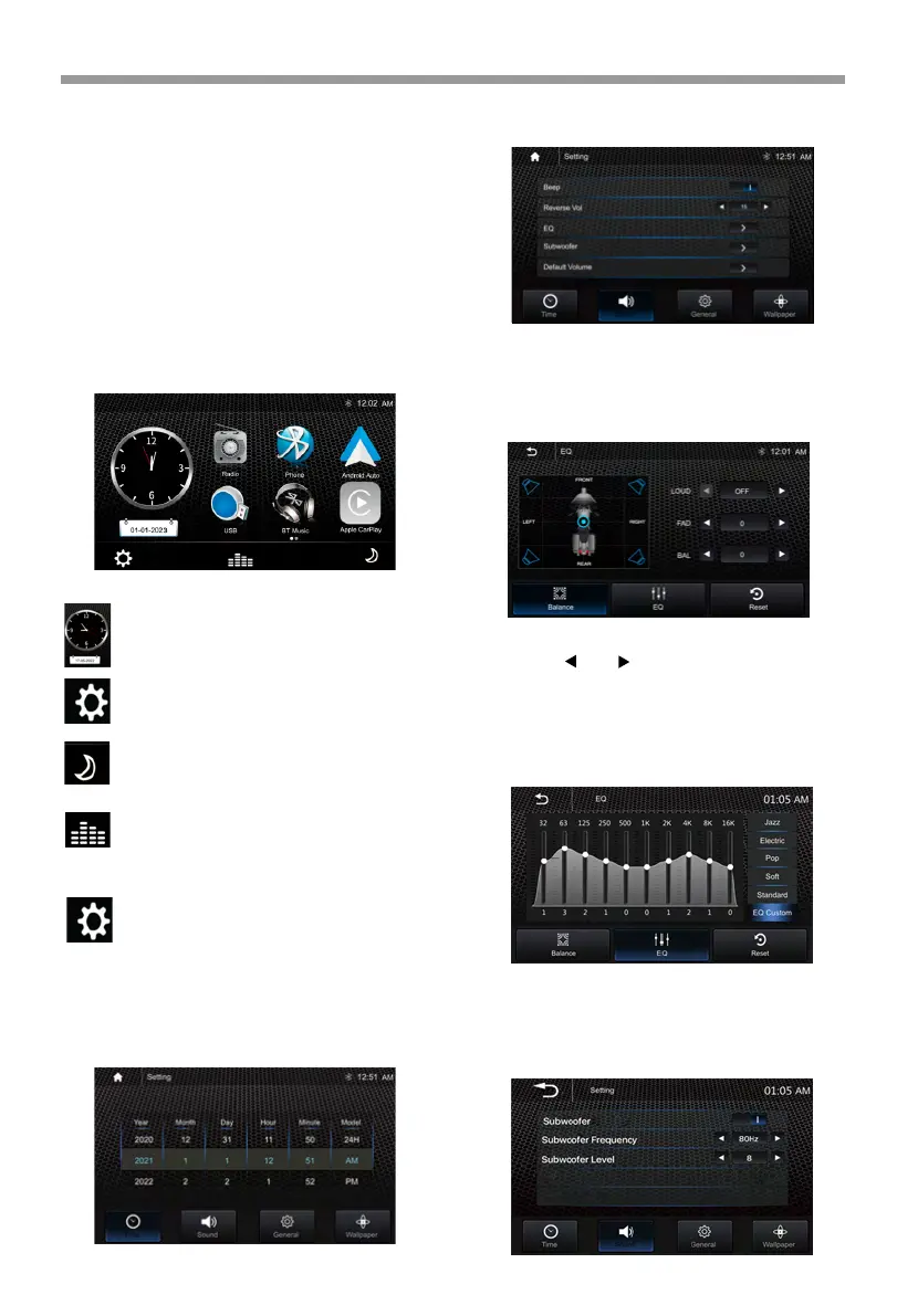 Touch the “ ” or “ ” of Balance /Fader to tune for