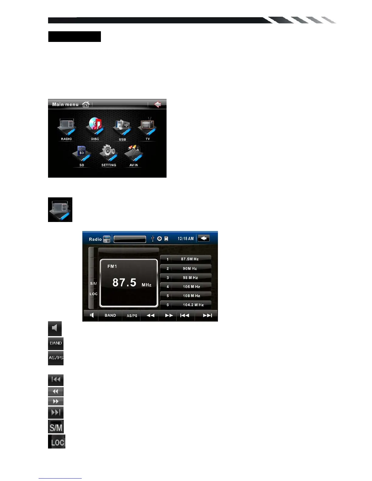 Touch this button can choose FM1,FM2, FM3, AM1,AM2.