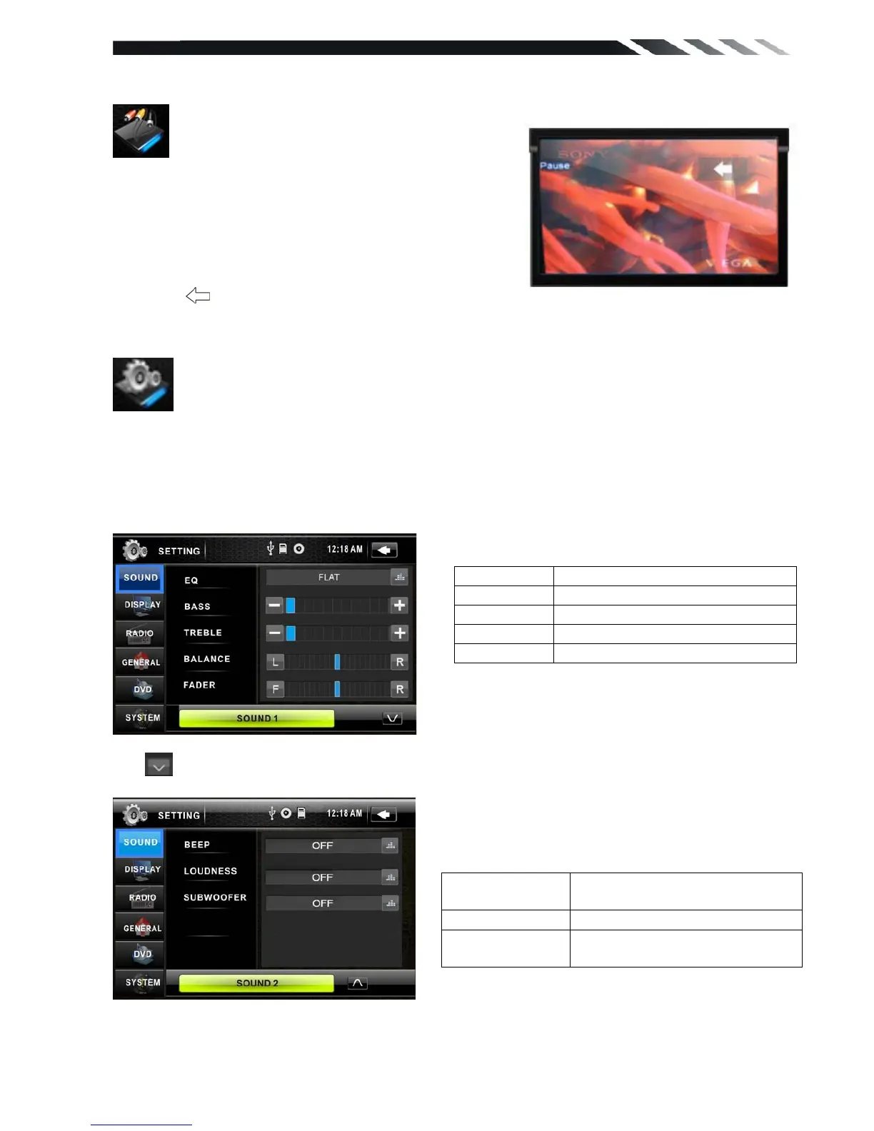 Tap SOUND button to show SOUND1 menu.