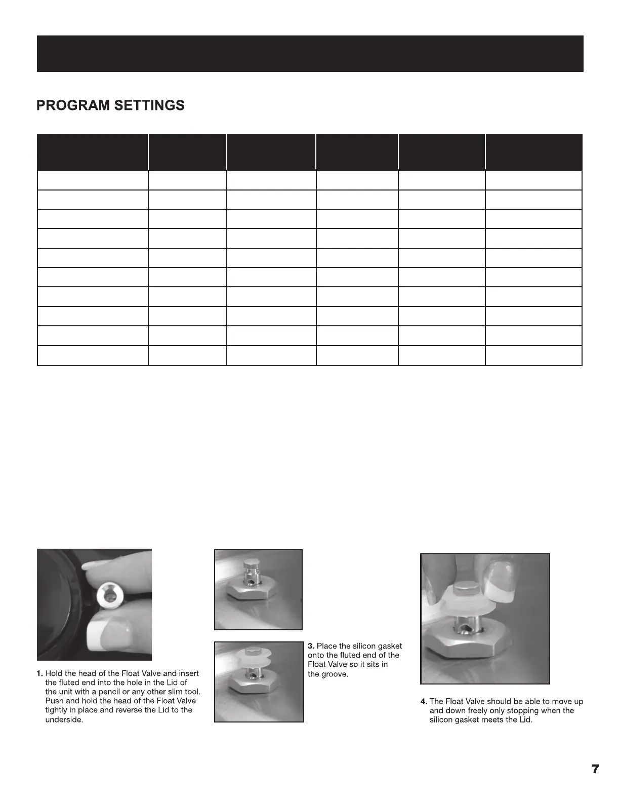 the Lid. This should seal the Lid and the steam should stop coming out. It is also important to be sure the Float