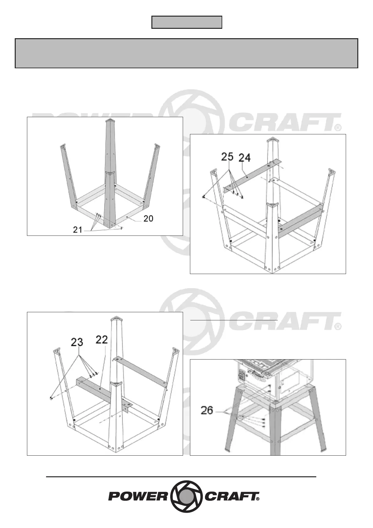 tværskinnen på benene med skruer, spændeskiver