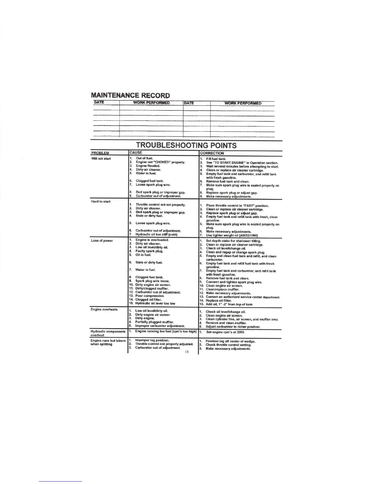 POWER DOG QUICK SPLIT 24 - Troubleshooting Points