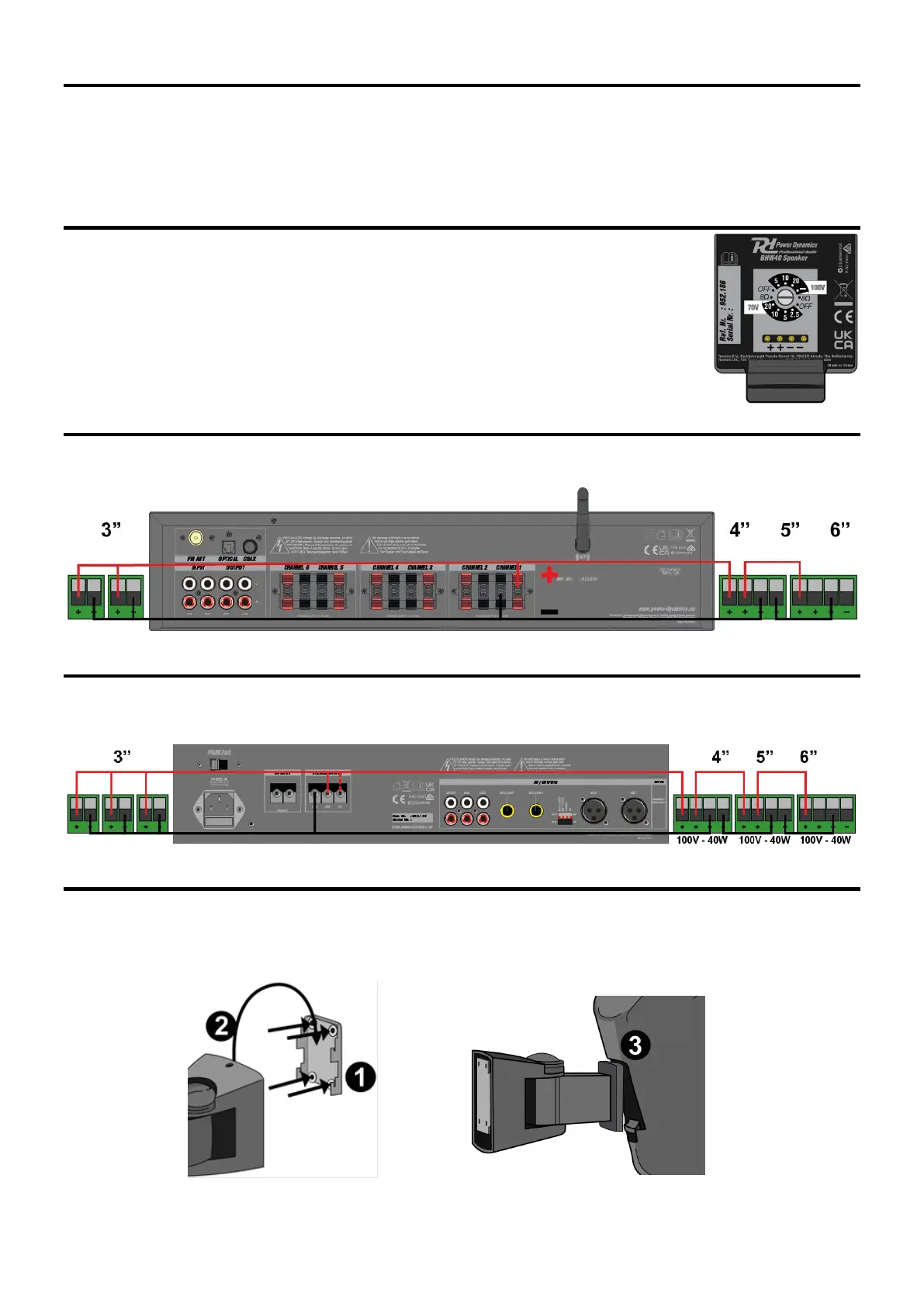 allow for a minimum of 4Ω impedance, which translates to two BHW series speakers connected in parallel.
