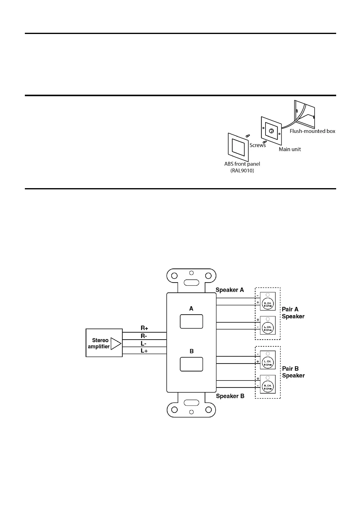 C. Führen Sie die 4 Lautsprecherkabel vom Verstärker in den Eingangsbereich ein.