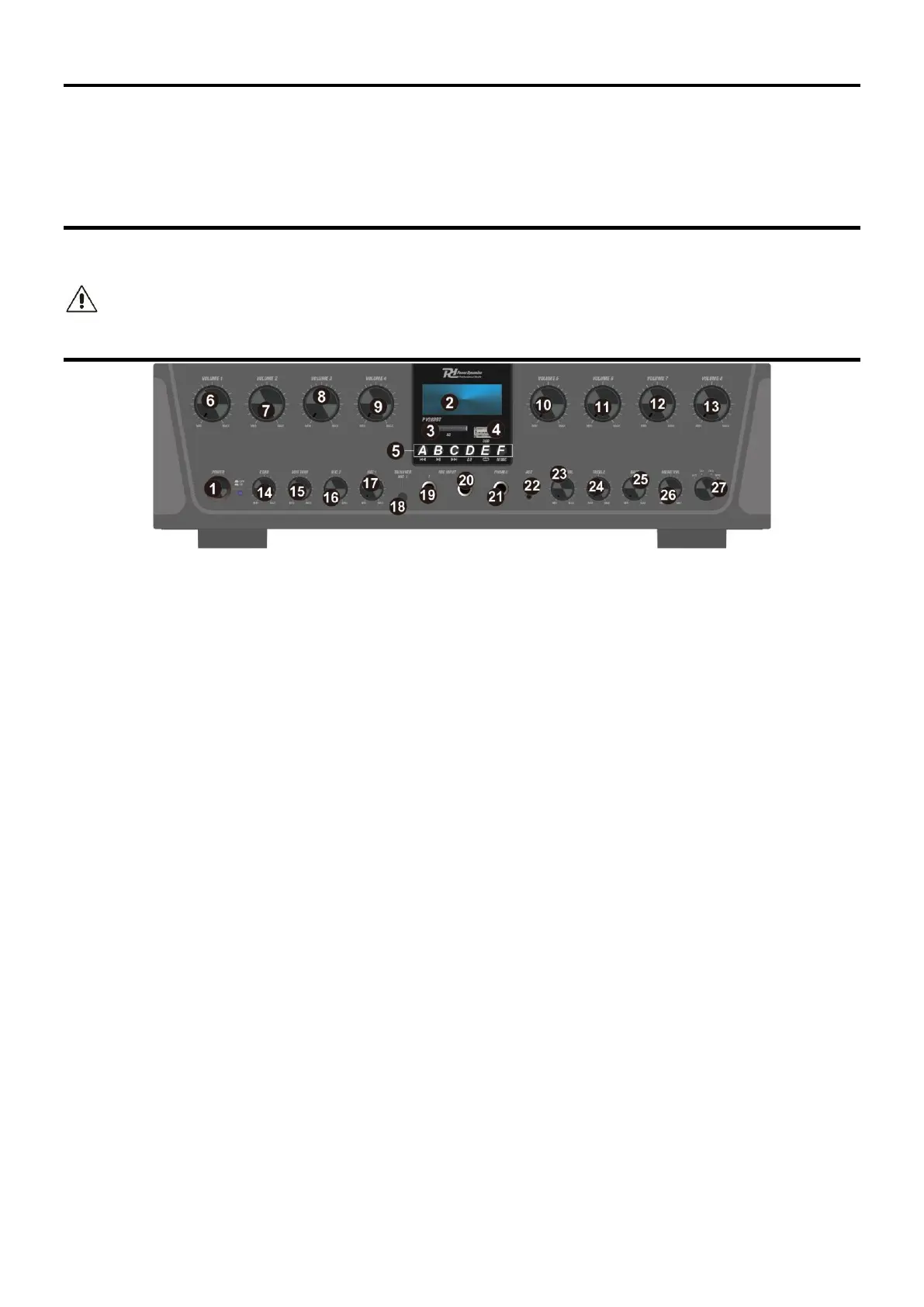 F. MODE: Press to change between playback modes. The mode is automatically set to USB/SD after turning the unit on. The