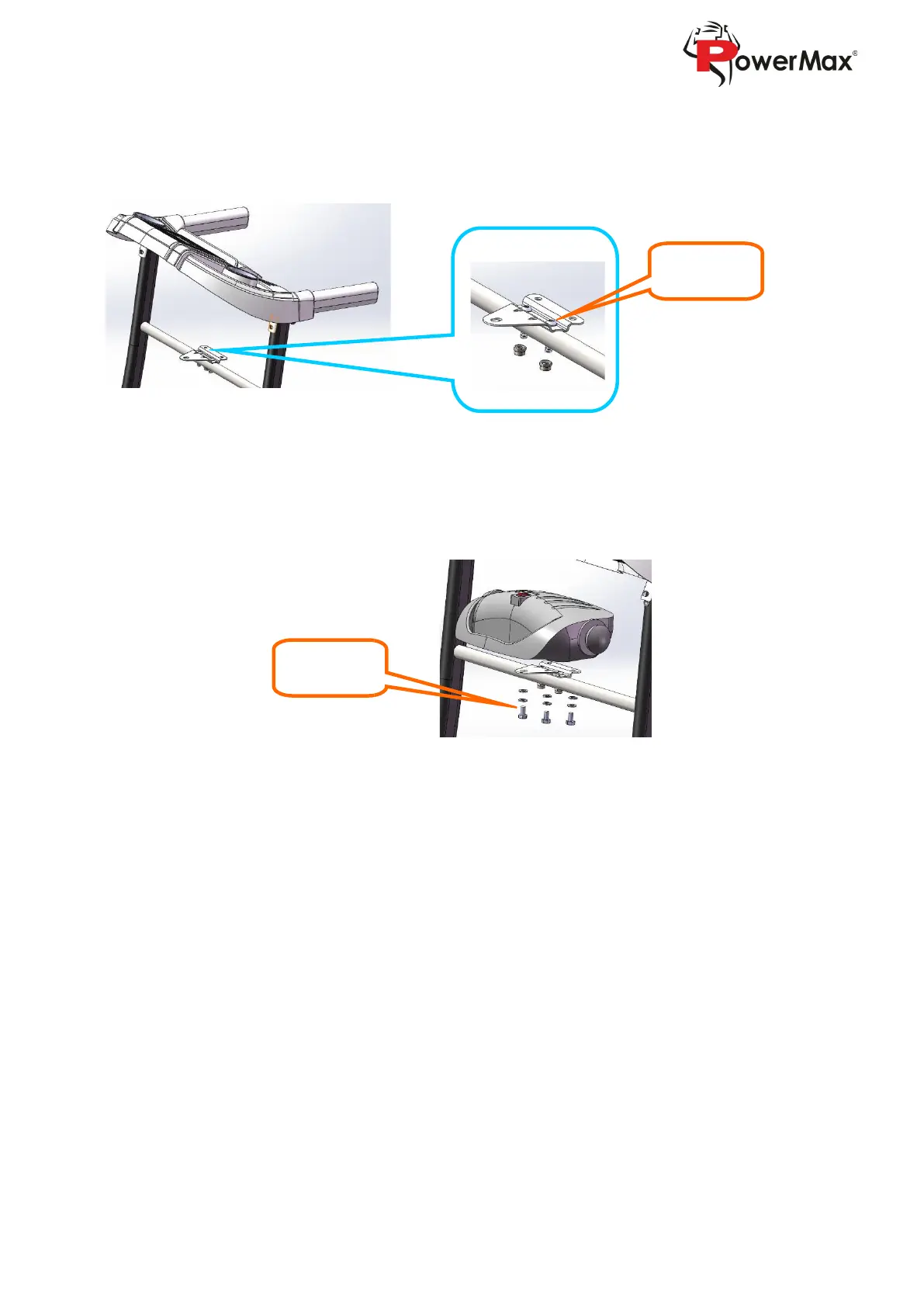 5. Put the massager supporting frame on the rail, and the tighten with screw M8*35 and nuts