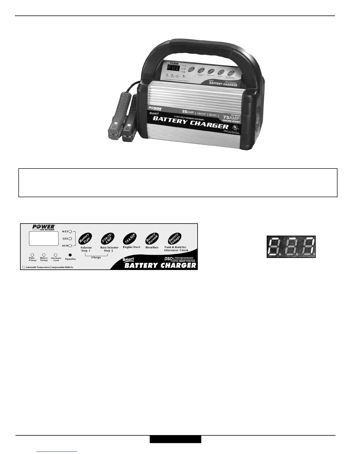 Engine Start - Places the charger in an engine start sequence, this button will not be activated unless the charger is in the 25