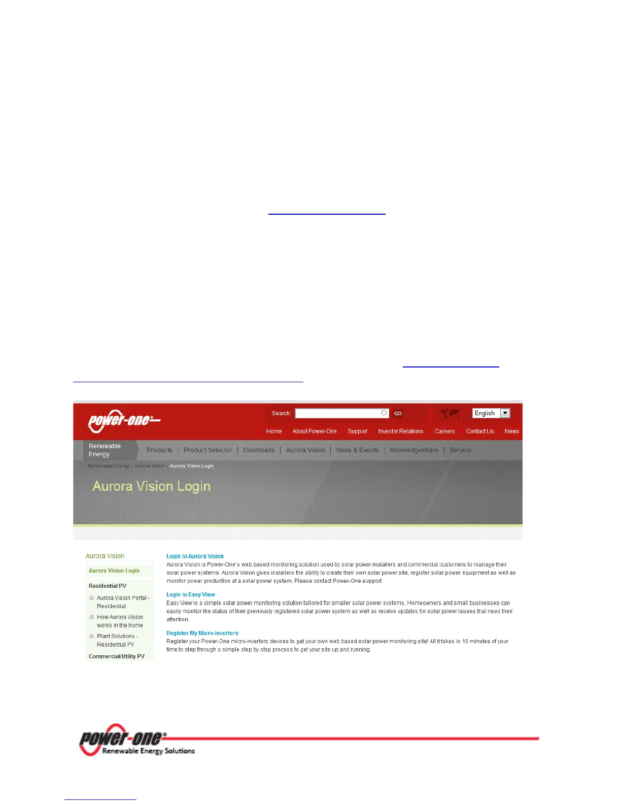 Homeowners can register their plant through the Power-One Website (no special customer or user