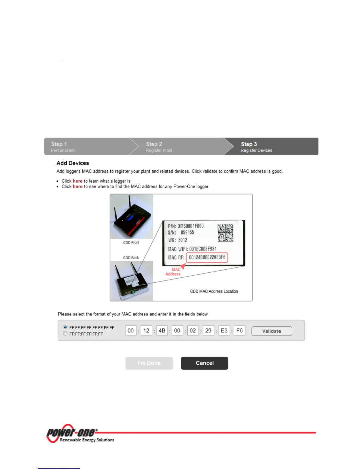 B. Enter the CDD’s RF MAC address in the 8 display fields