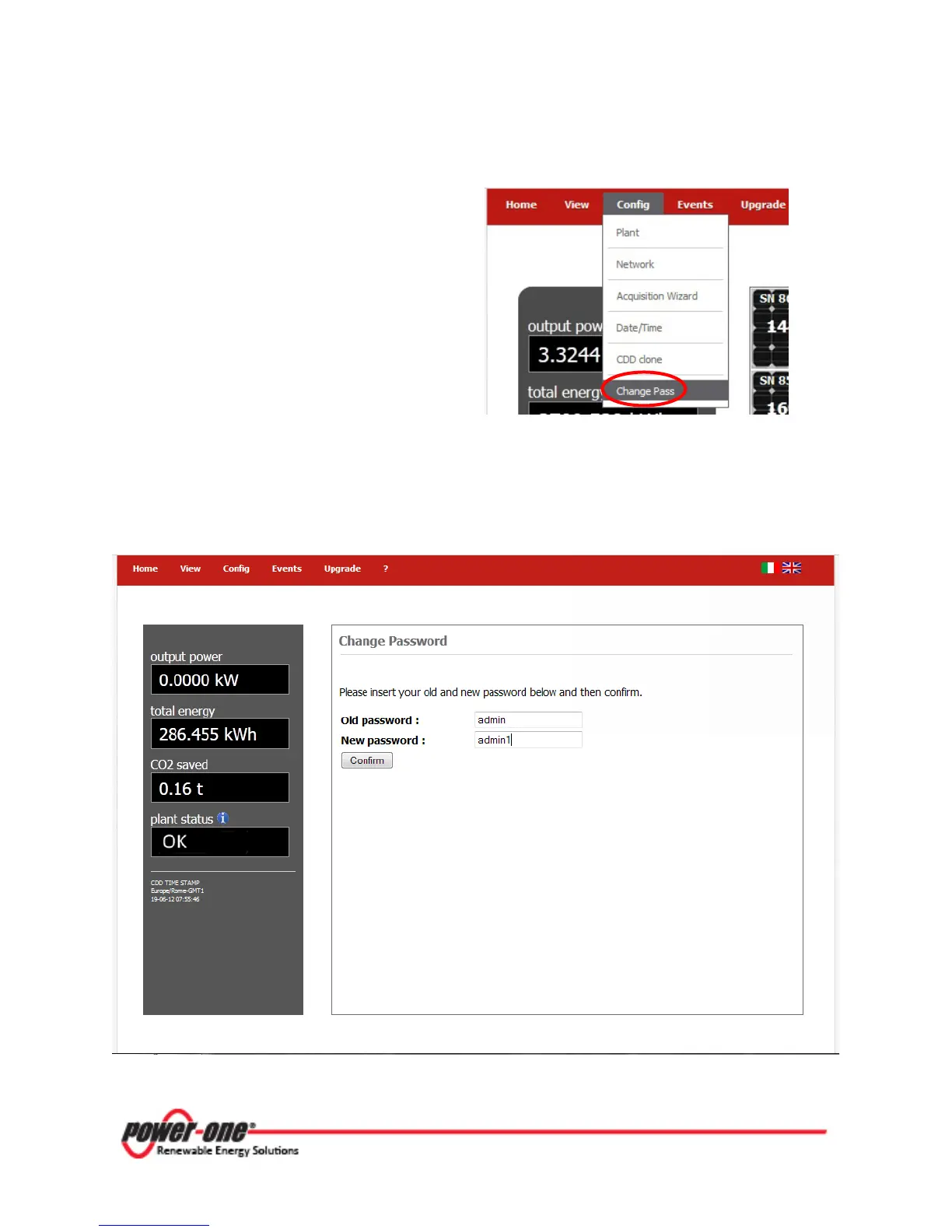 Enter the old password, admin, and then enter a new password. Press Confirm to complete.
