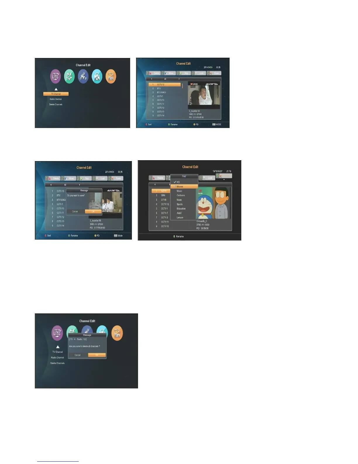 When you enter “Channel Edit” menu, the following icons will be shown: