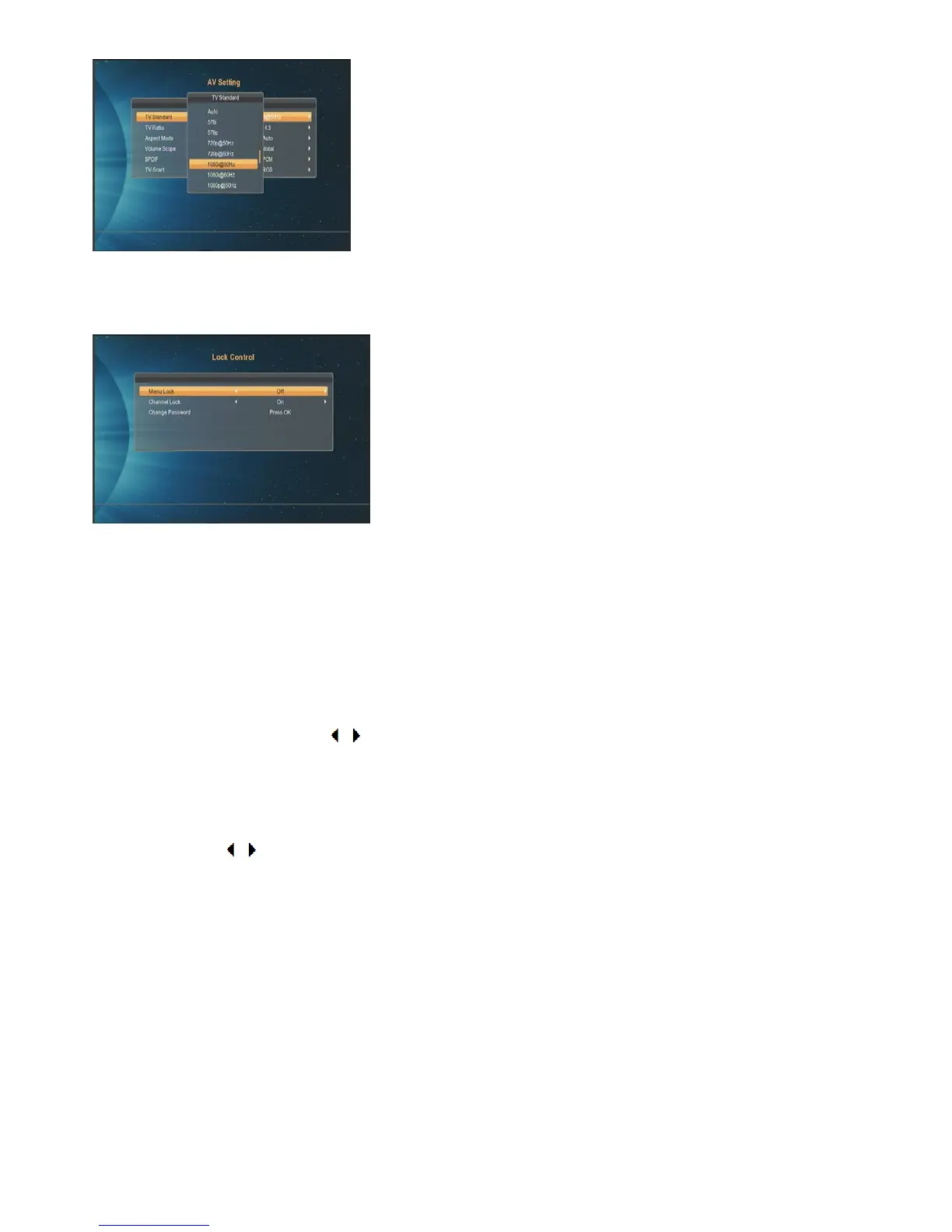 Channel Lock determine that when users wish to play the locked channels, and if the setting is “On”, the channel
