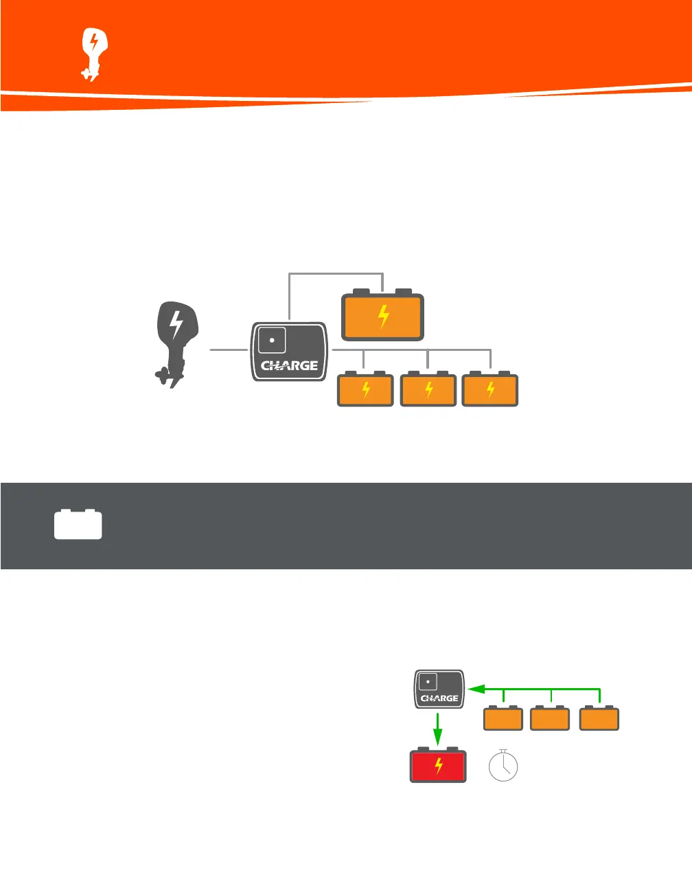 restore power to all of your batteries. Simply turn on your boat’s engine and the CHARGE™ will automatically