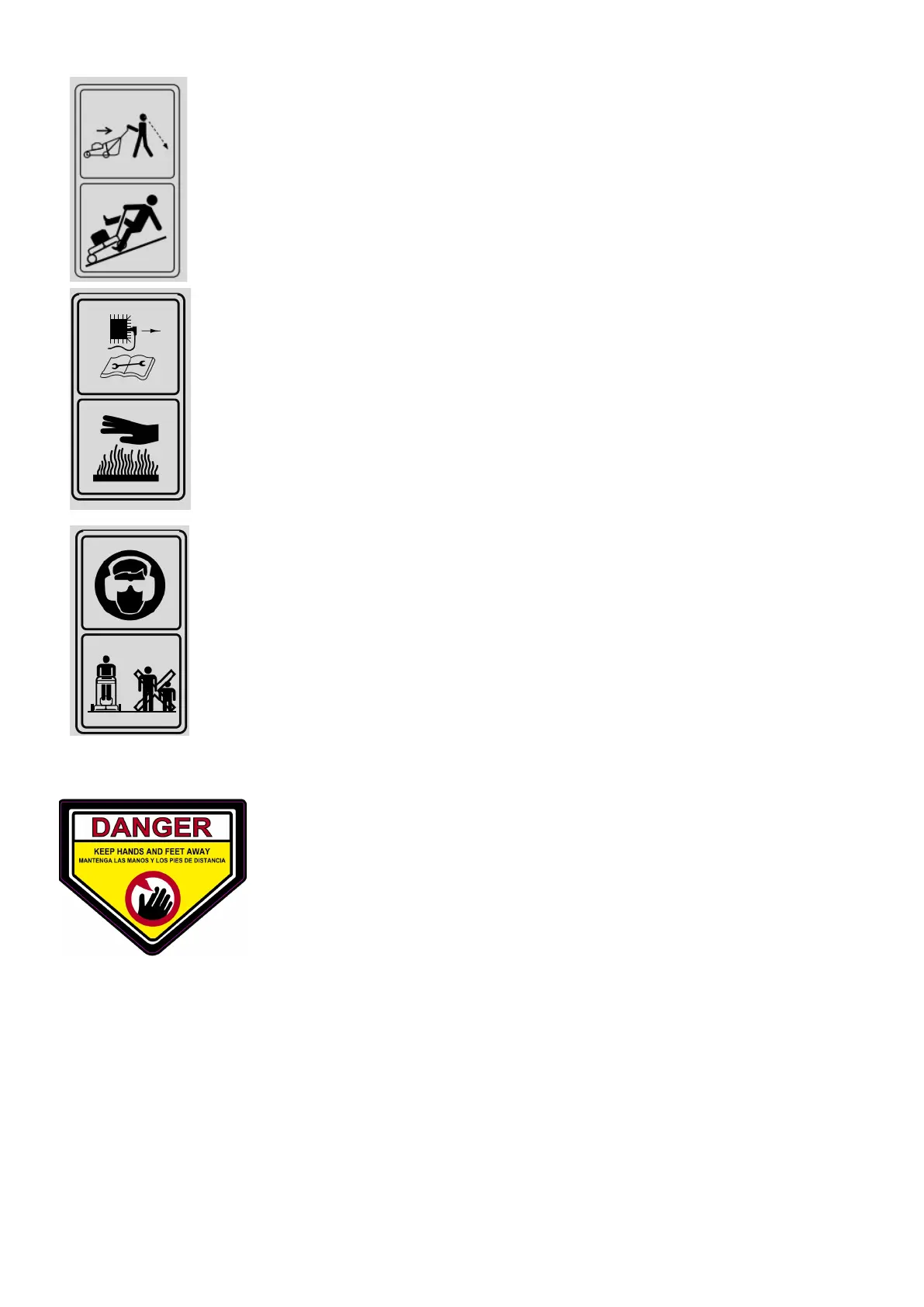 Avertissement: Gardez les panneaux de sécurité clairs et visibles sur l'équipement. Remplacez les