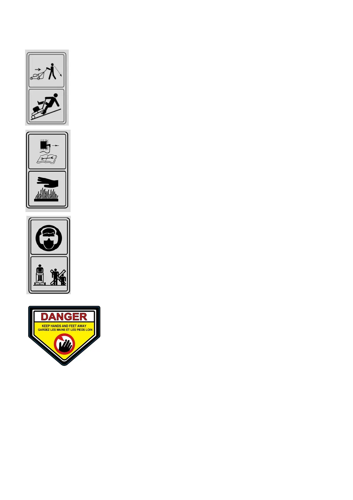 Avertissement: Gardez les panneaux de sécurité clairs et visibles sur l'équipement. Remplacez les panneaux de