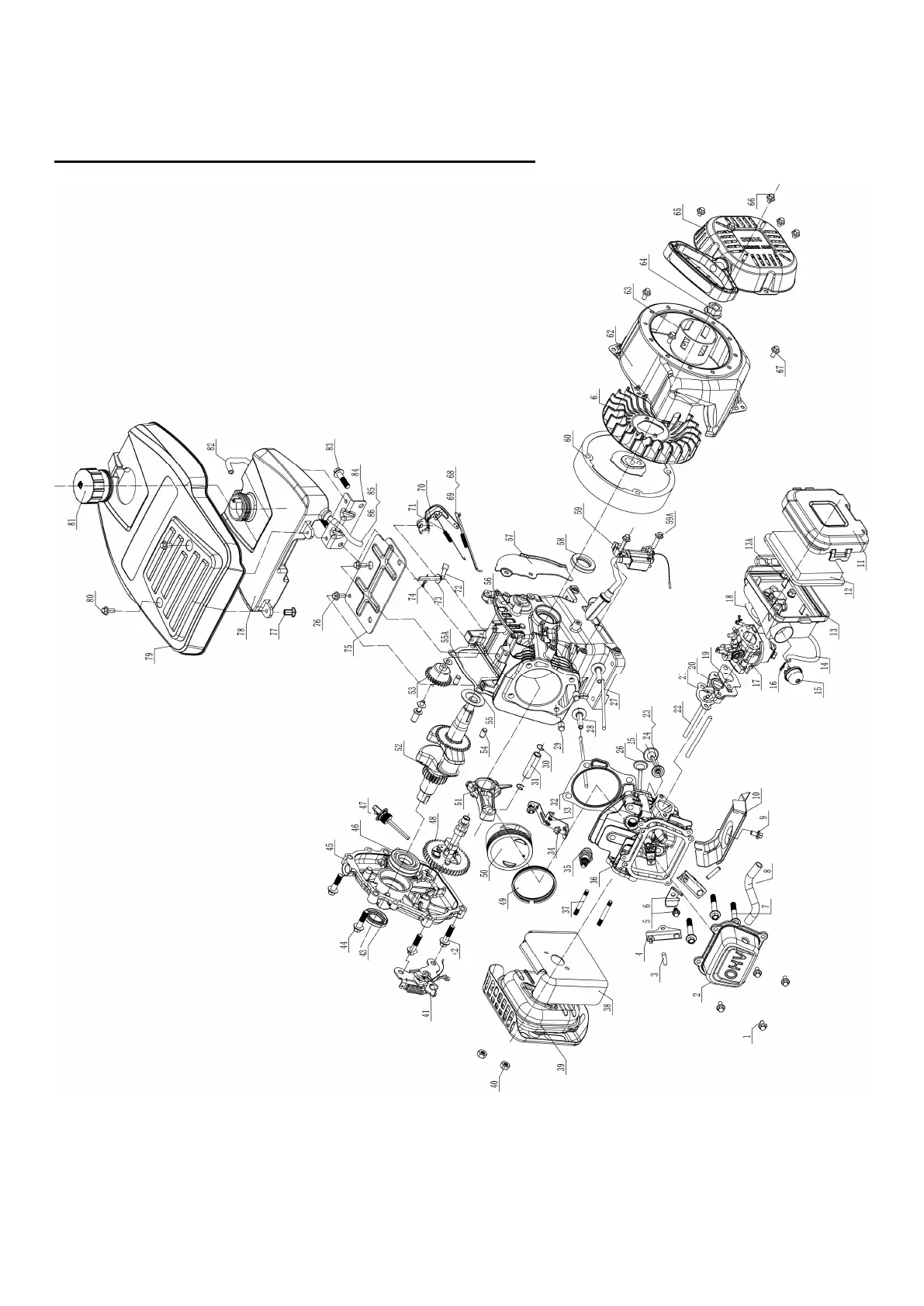 Vista detallada del motor y lista de piezas