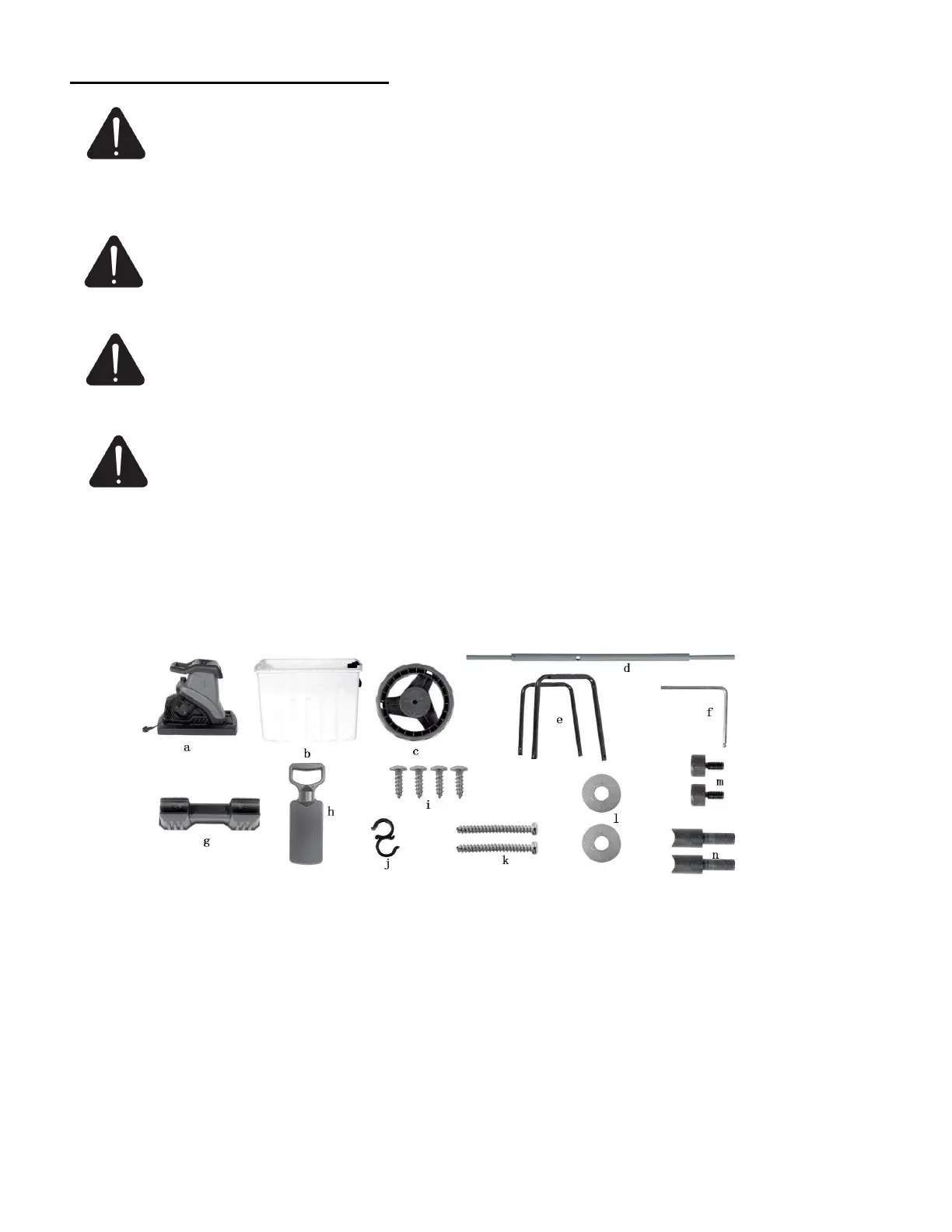 when you unpack it. Parts on this list are not assembled to the product by the manufacturer