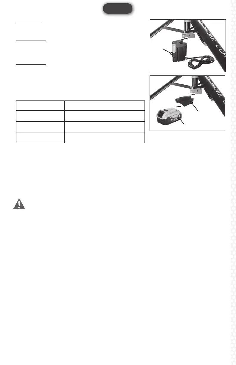 AVERTISSEMENT: S’assurer toujours que la lampe de travail est