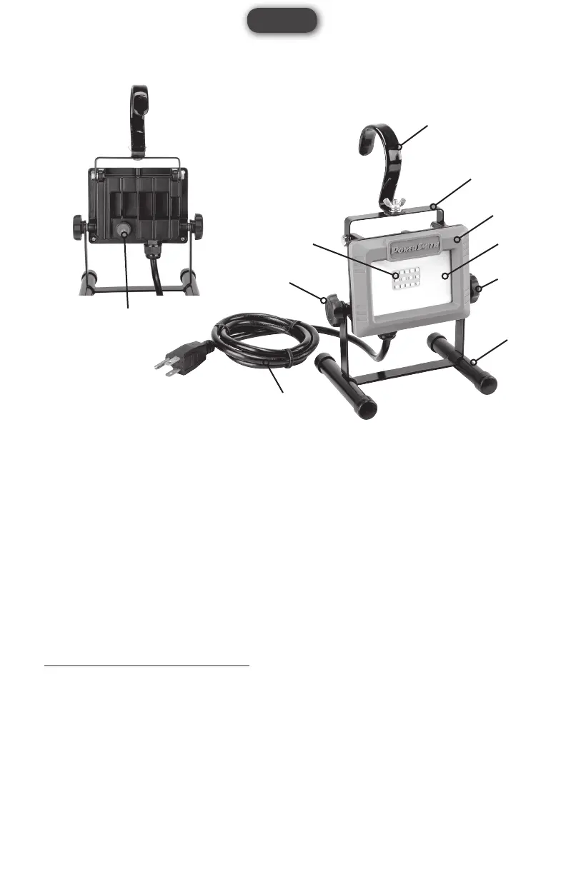 POWER SMITH PWL110S - Knowing Your Work Light; Work Light Components Diagram; Unpacking and Content; Contents in Package
