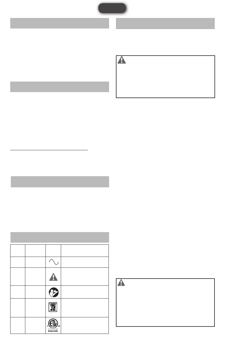 Puissance évalué ....................120 V ~, 60 Hz, 110 W