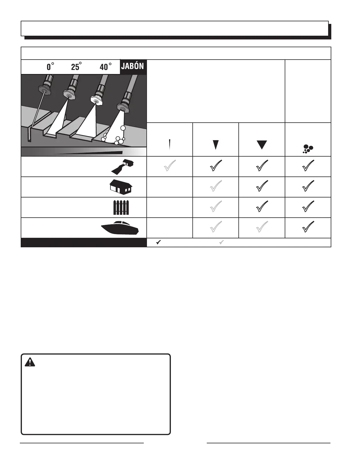 Boquilla recomendada Usar con cuidado en ciertas aplicaciones