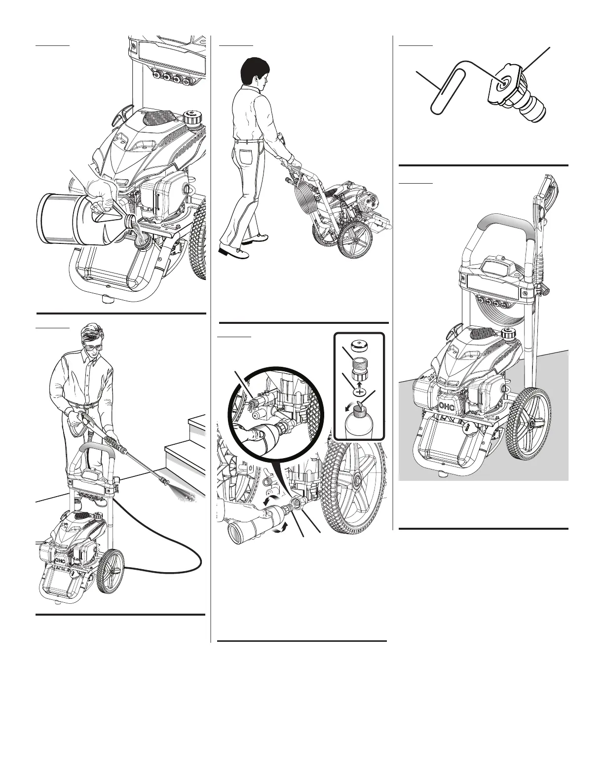E - Pump outlet (sortie de la pompe, orificio de