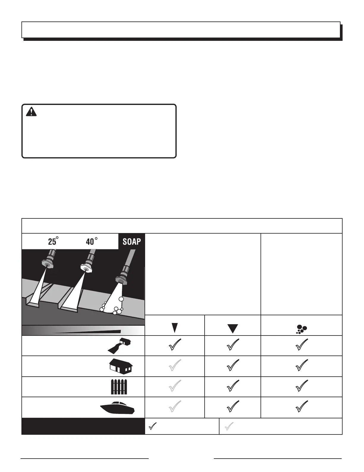 Recommended nozzle Use with caution for certain applications