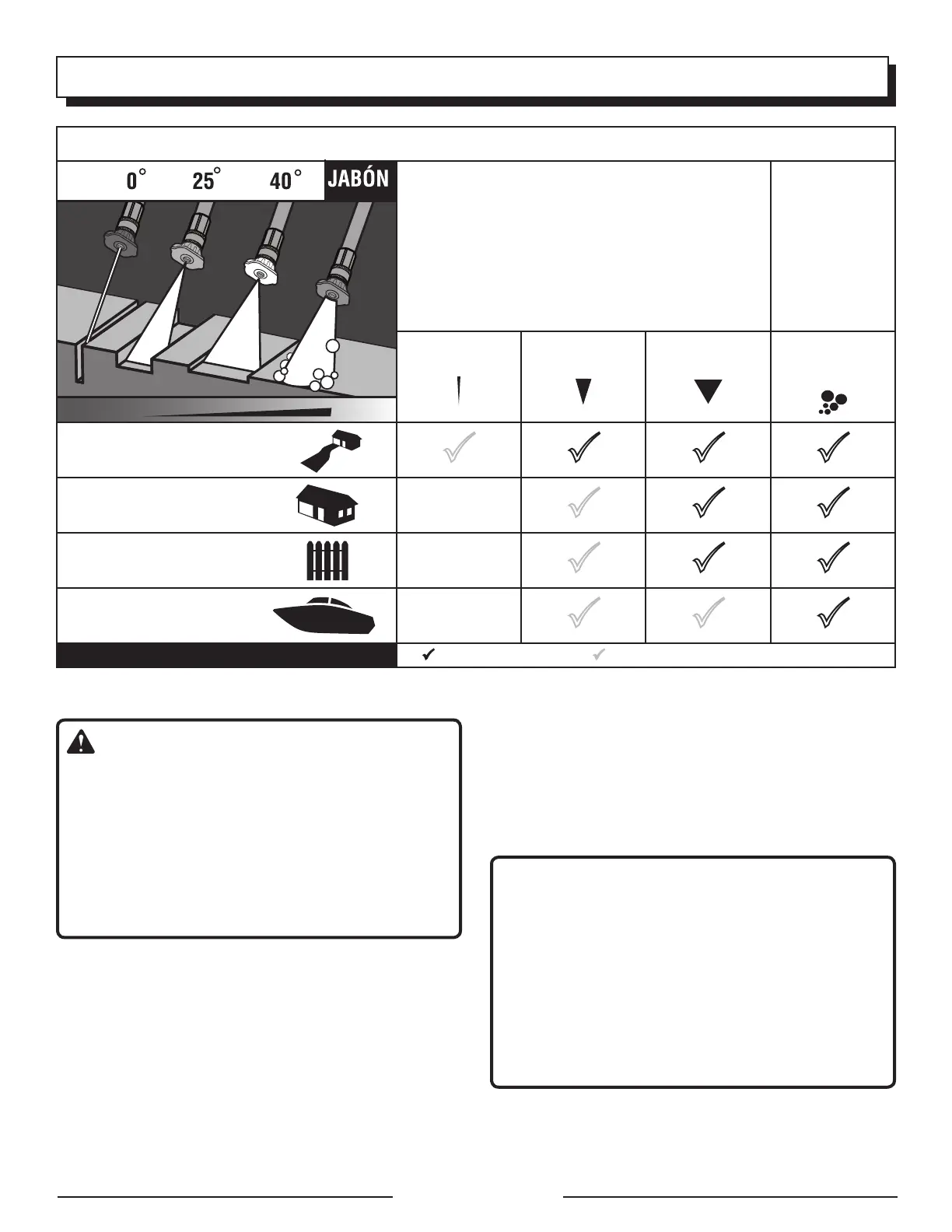 Boquilla recomendada Usar con cuidado en ciertas aplicaciones