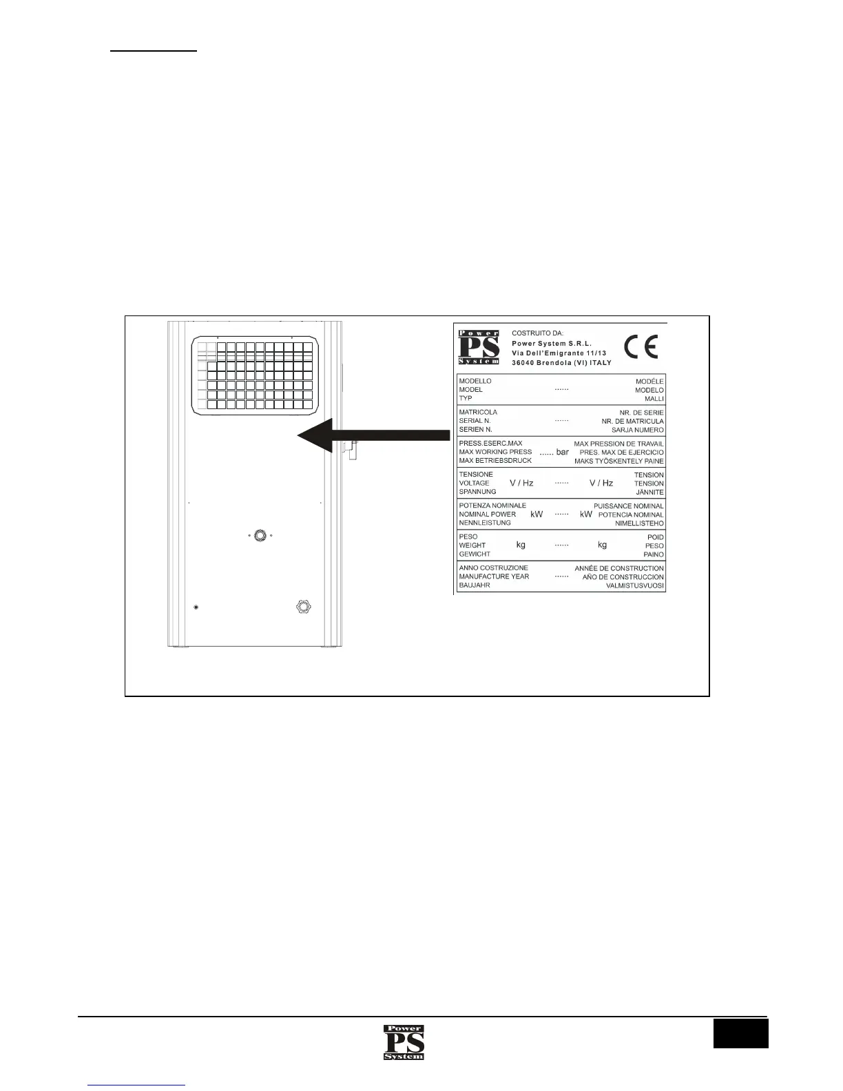 mm. It is applied on the outside, on the rear of the compressor. The following data are indicated legibly and indelibly on the plate: