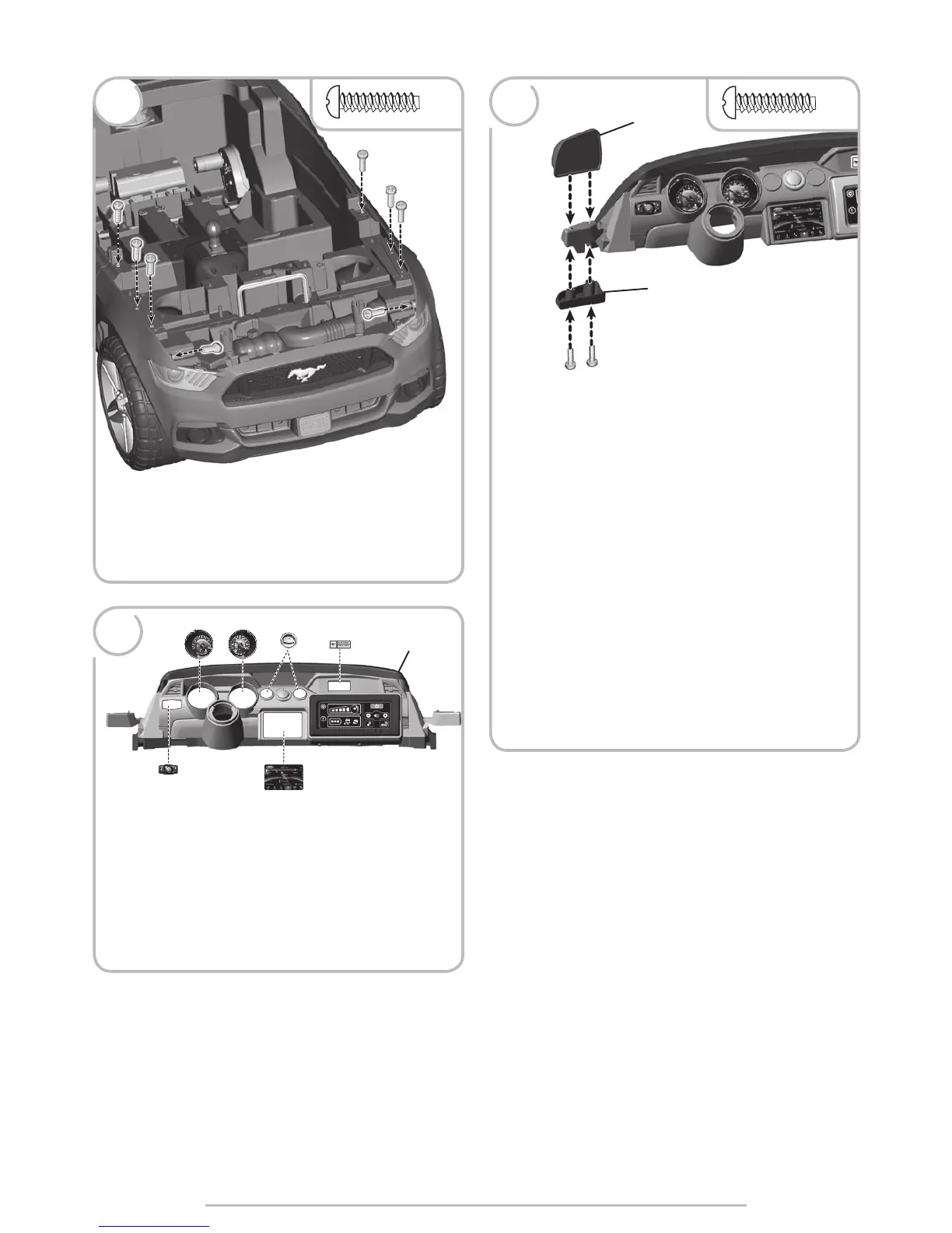 • Insert two M4,5 x 1,9 cm screws up through the mirror retainer