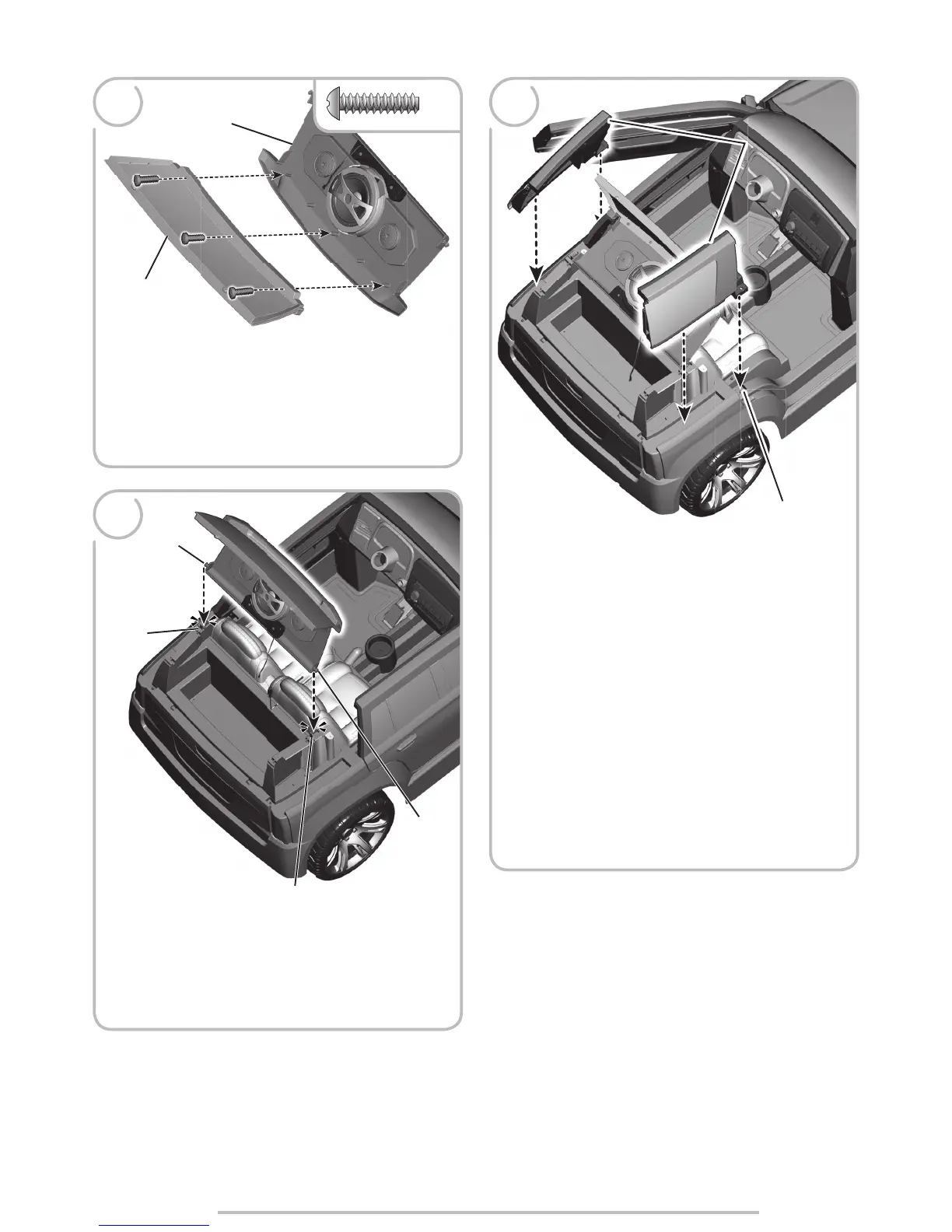 • Aligner les trous de la vitre du coffre avec les tiges du haut-parleur.