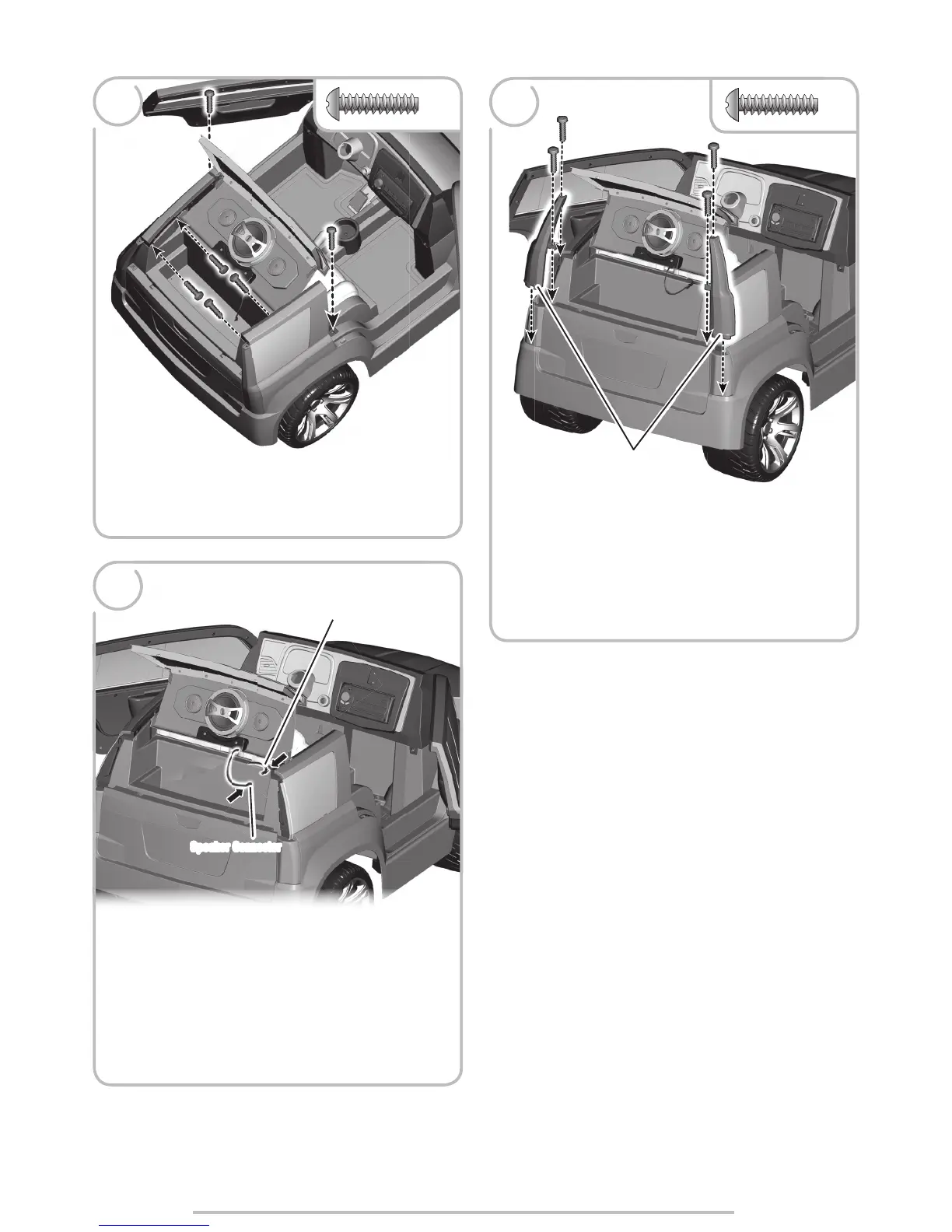 • Insert two #8 x ¾" (1,9 cm) screws into each taillight and tighten