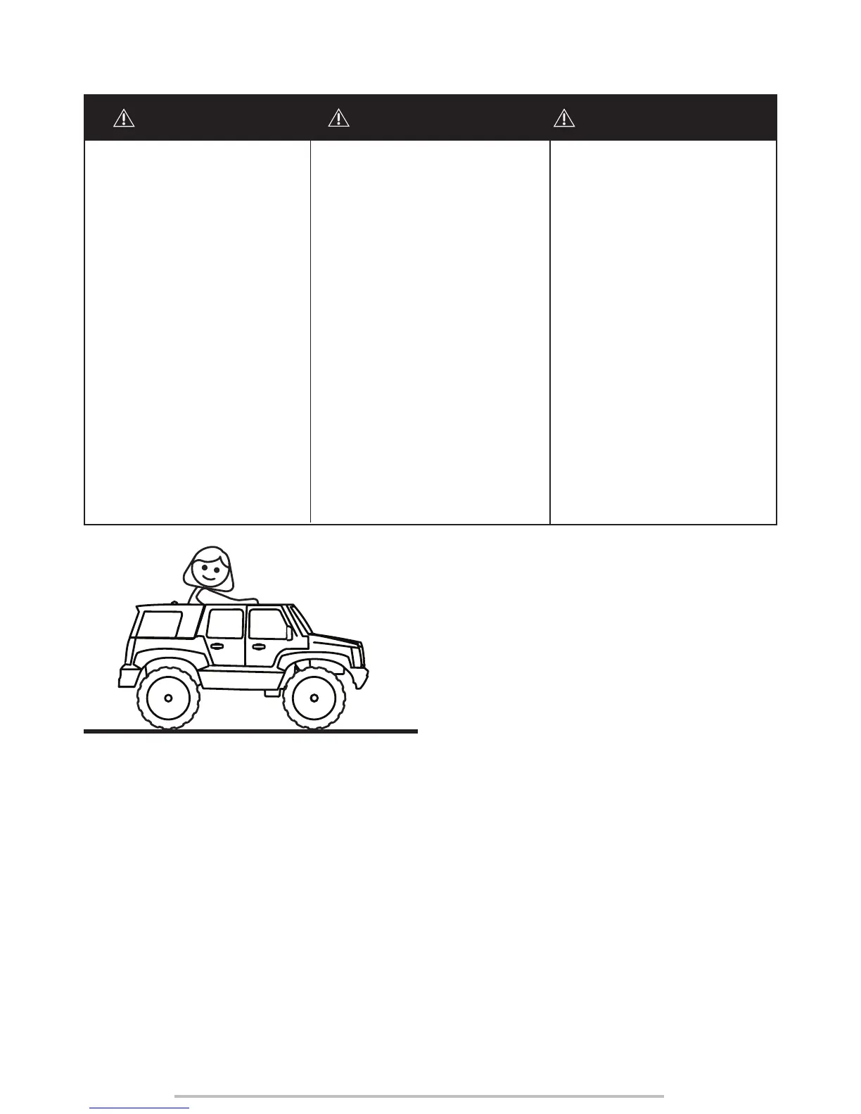 • Le véhicule doit être utilisé uniquement le jour ou dans un endroit bien éclairé.
