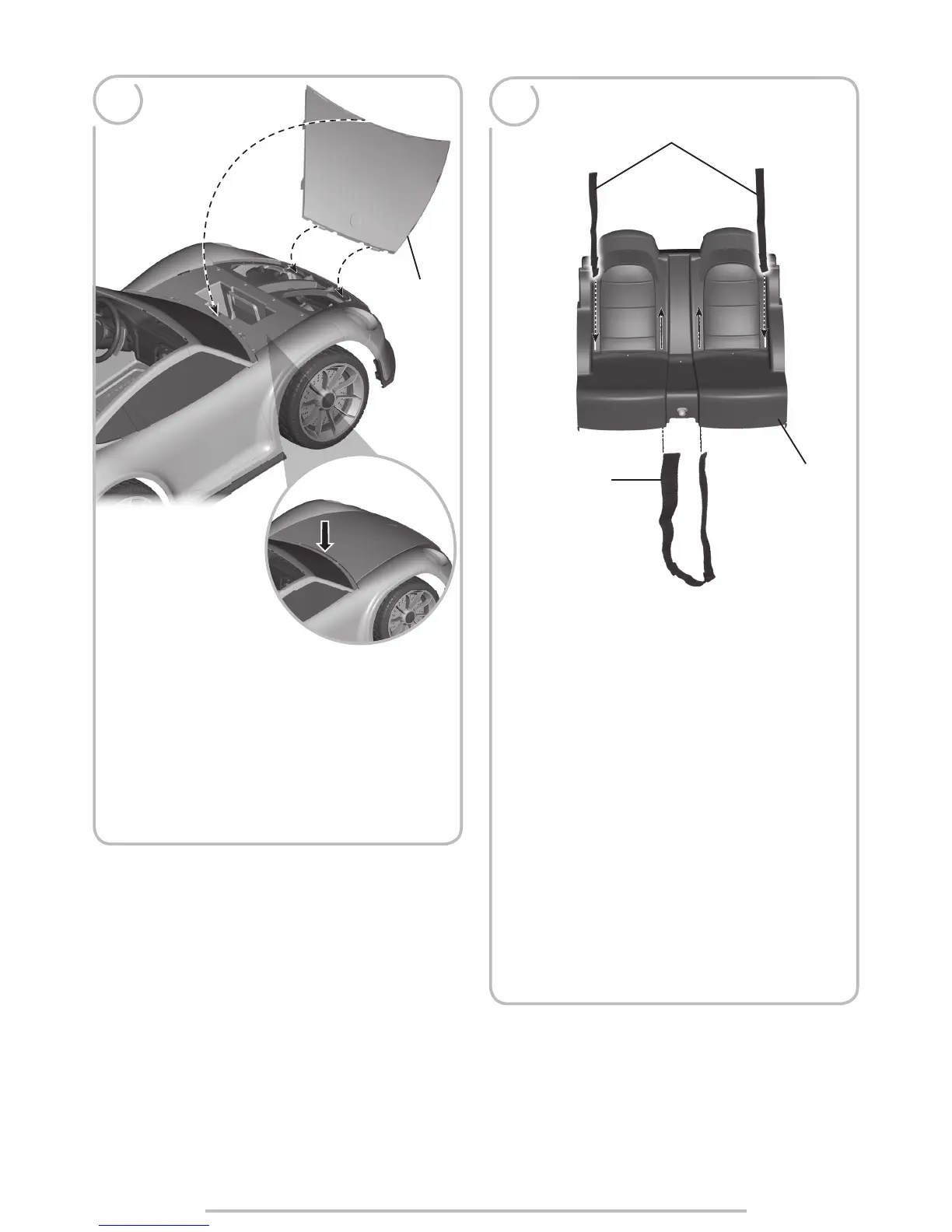 • Insert each fastener end of the long seat belt through each slot in the