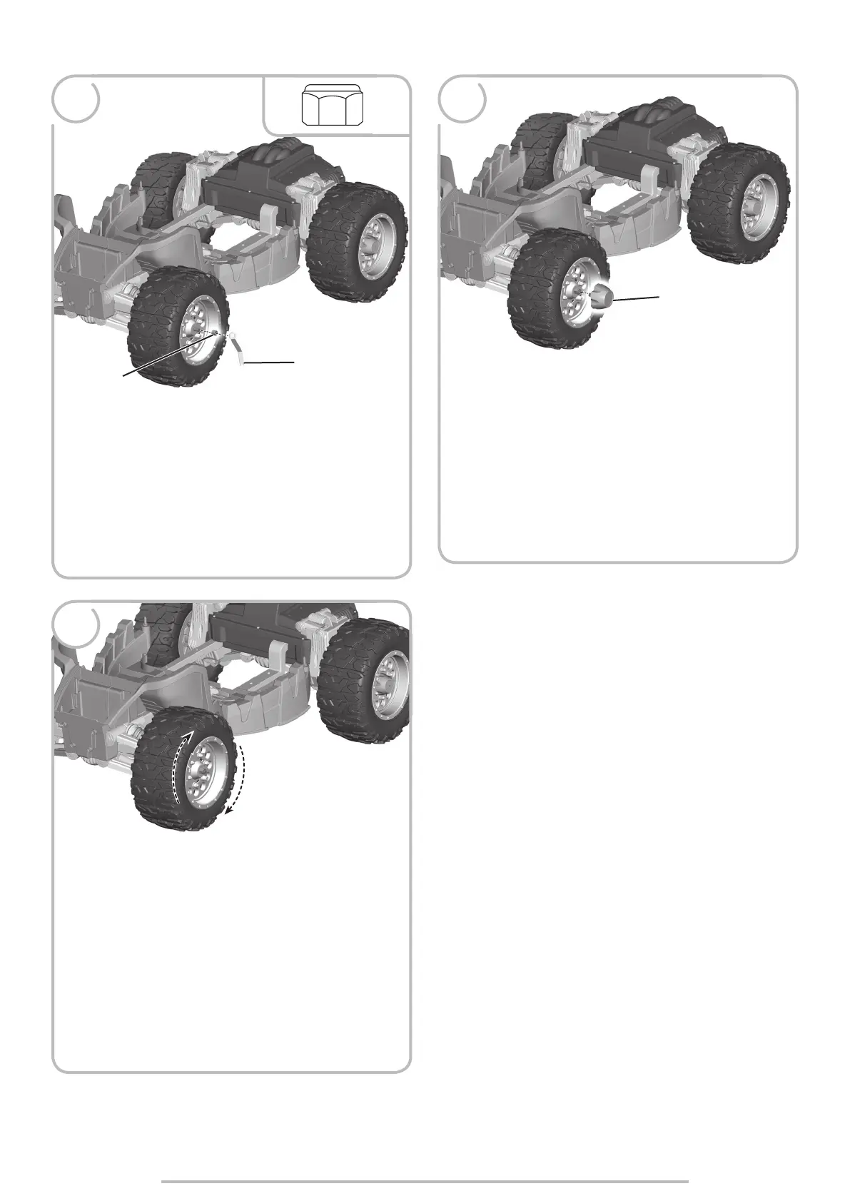 • Fixer un écrou de sécurité de 1 cm à l’extrémité de l’essieu avant et le