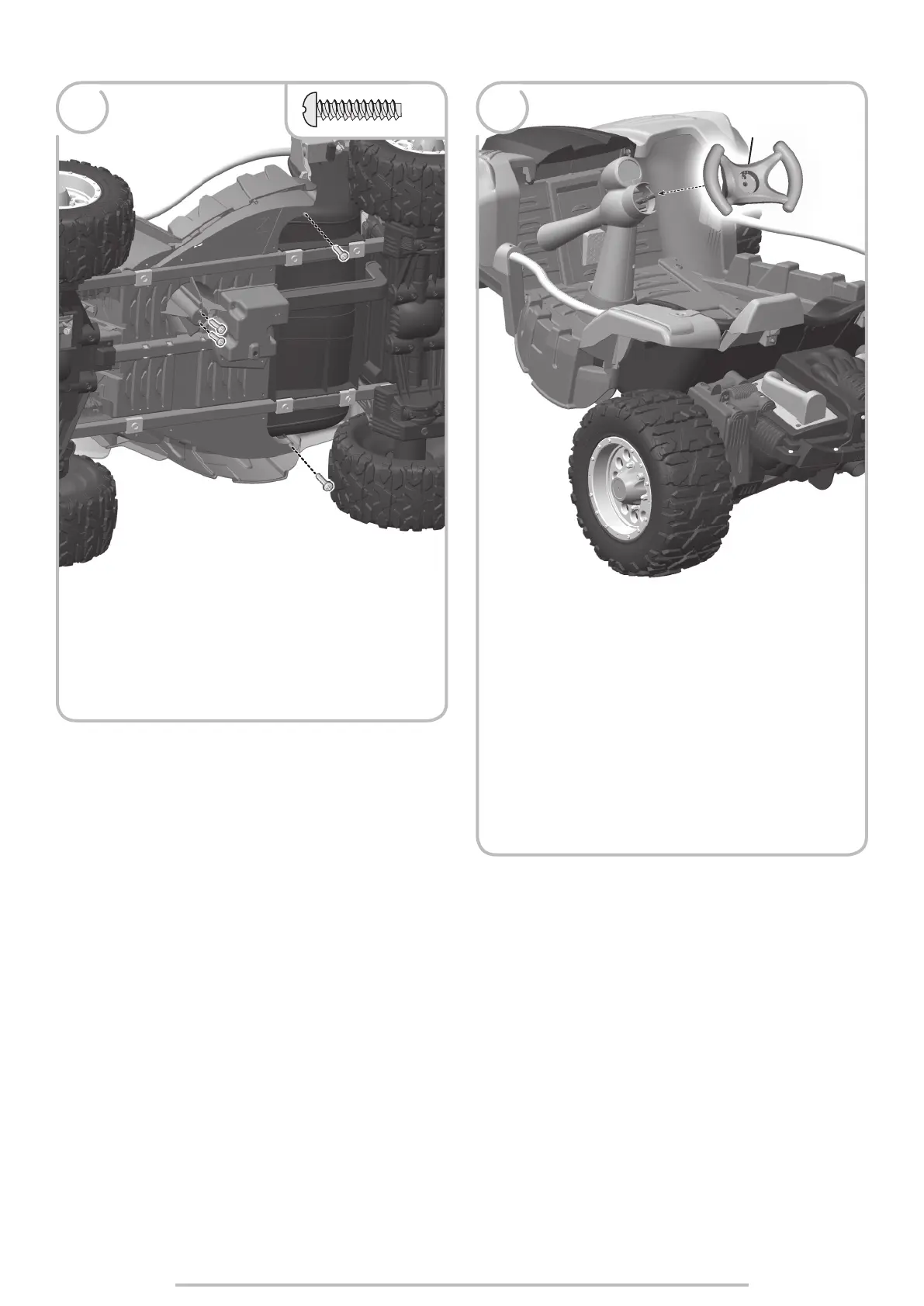 • Insérer quatre vis nº 8 de 1,9 cm dans les trous sous le véhicule
