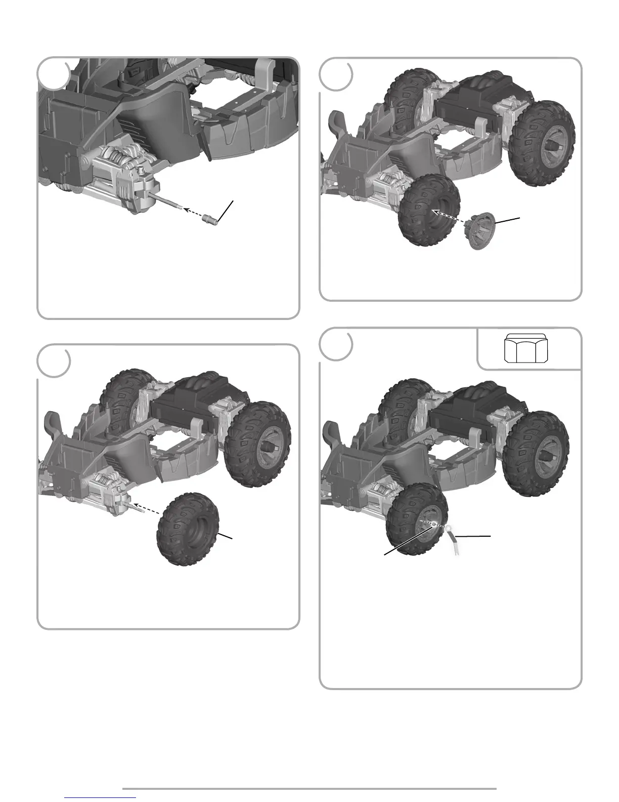 • Remove the cap on the end of the front axle. Dispose of the cap in the trash.