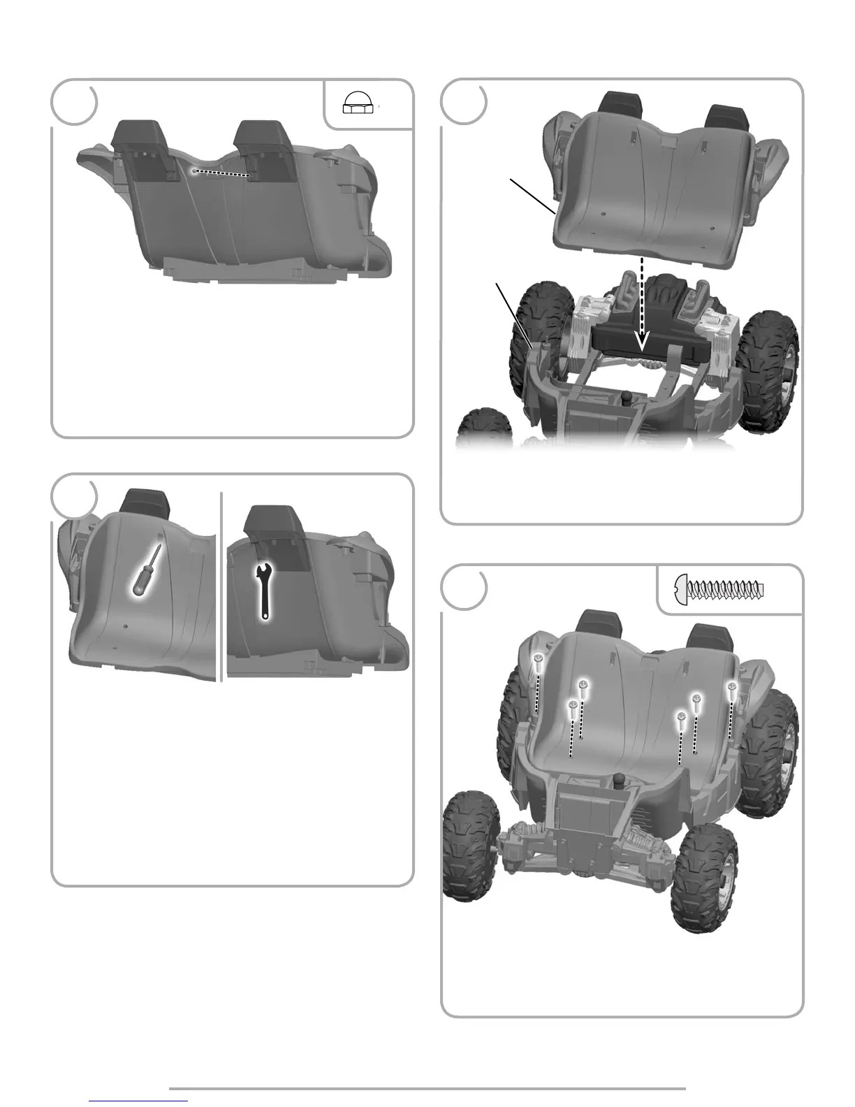 • Insert six #8 x ¾" (1,9 cm) screws into the seat and tighten.
