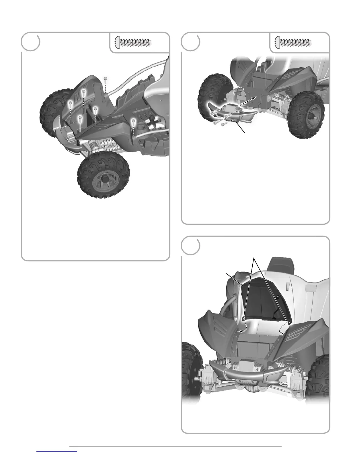 • Insert six #8 x ¾" (1,9 cm) screws into the fenders and tighten.