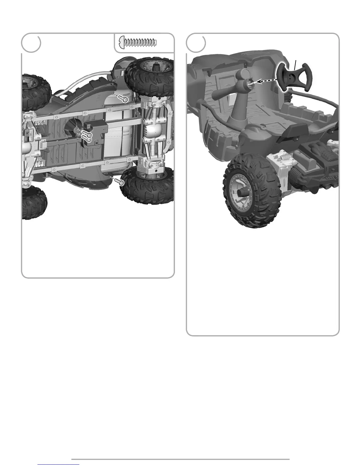 • Insérer quatre vis nº 8 de 1,9 cm dans les trous sous le véhicule (pour