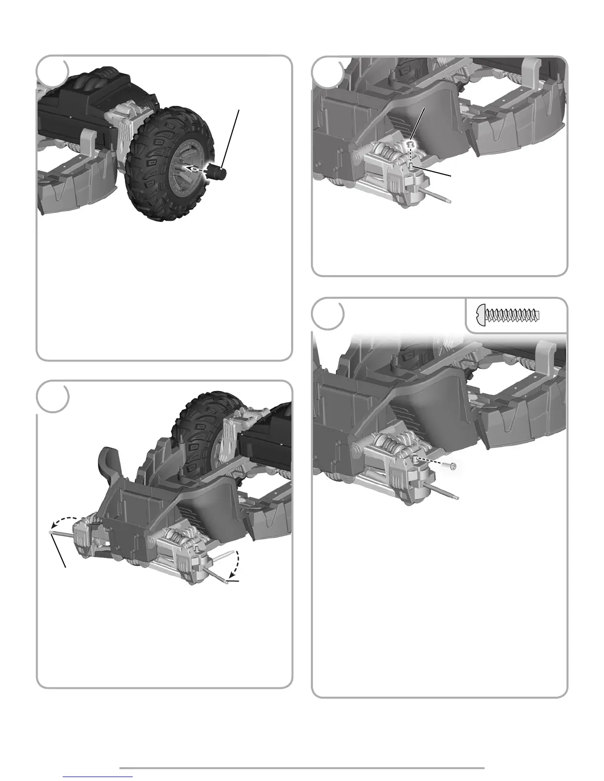 • Insert a #8 x ¾" (1,9 cm) screw into the large opening in the front axle