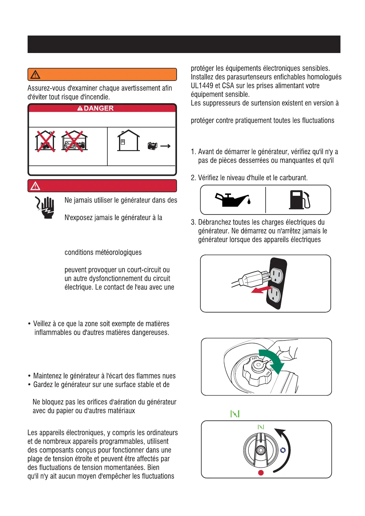 Évitez les autres risques liés au générateur. LISEZ LE MANUEL AVANT D'UTILISER