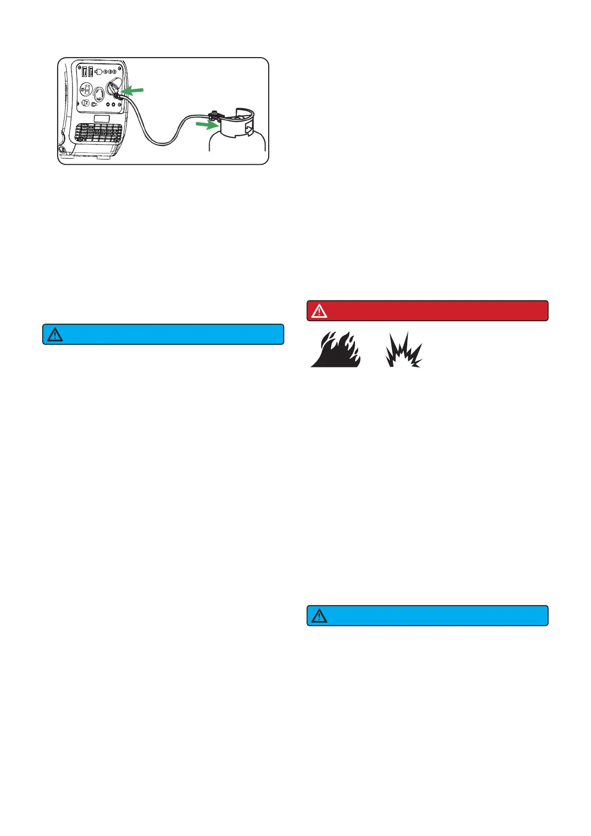 connecting the propane/LPG cylinder.Check the fuel