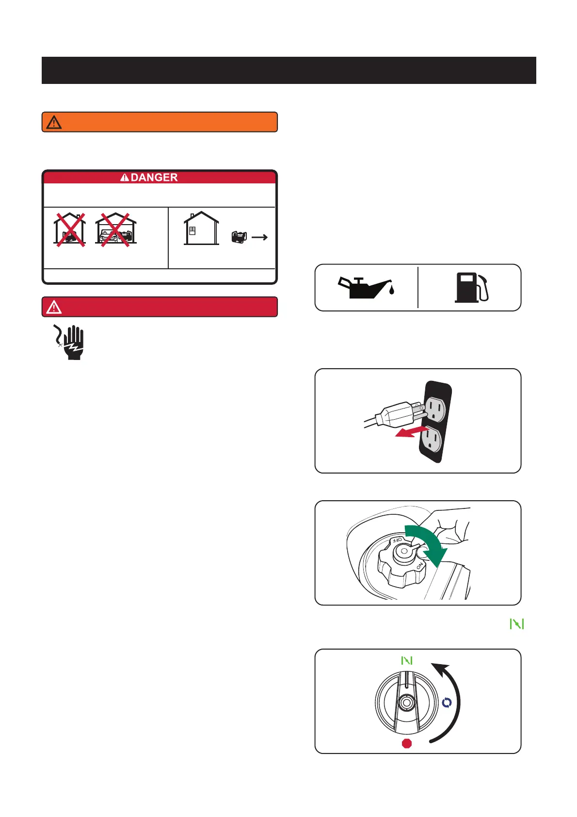 1. Before starting the generator, check for loose or