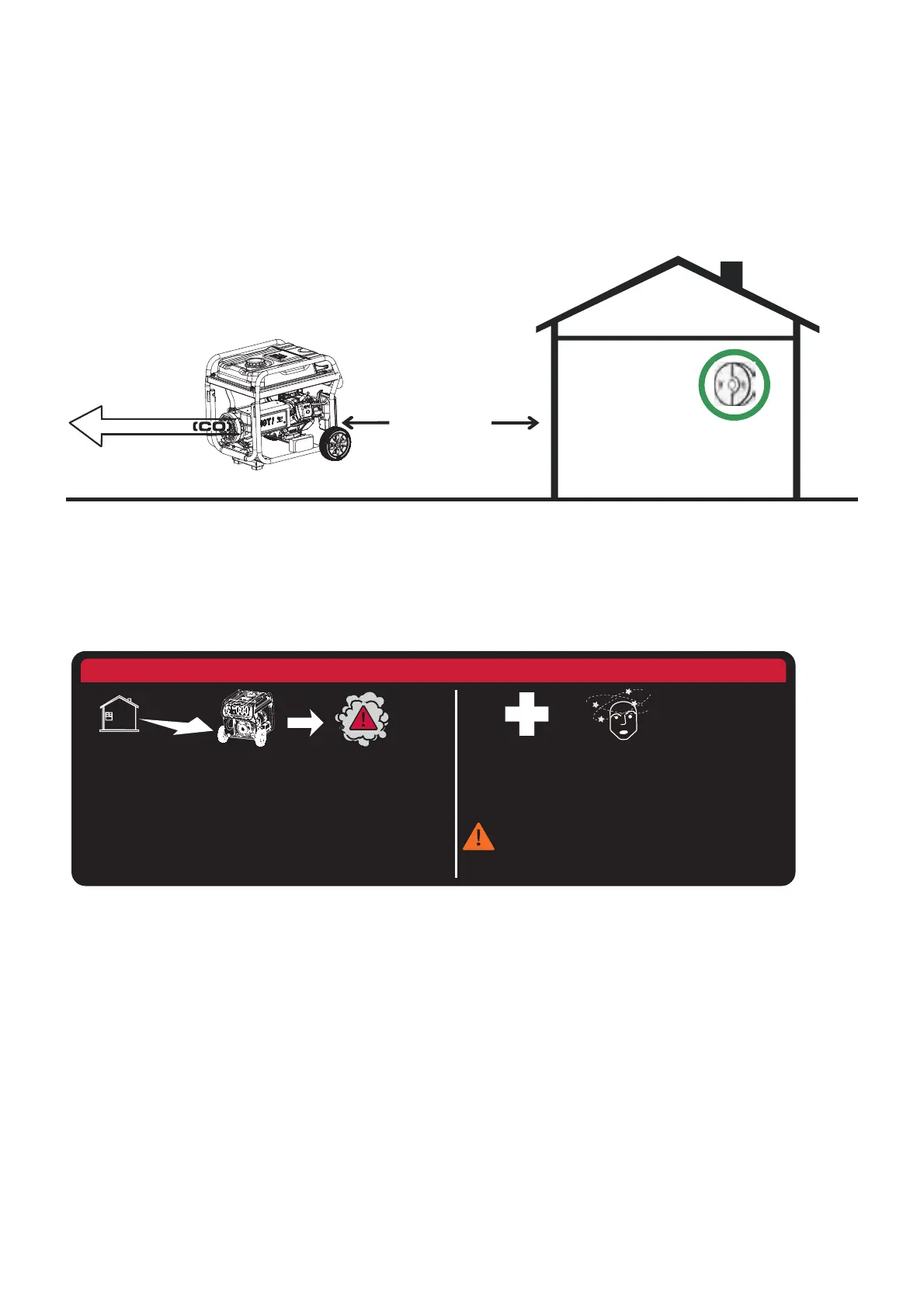 • MOVE GENERATOR TO AN OPEN, OUTDOOR AREA. • POINT EXHAUST AWAY. • DON’T RUN