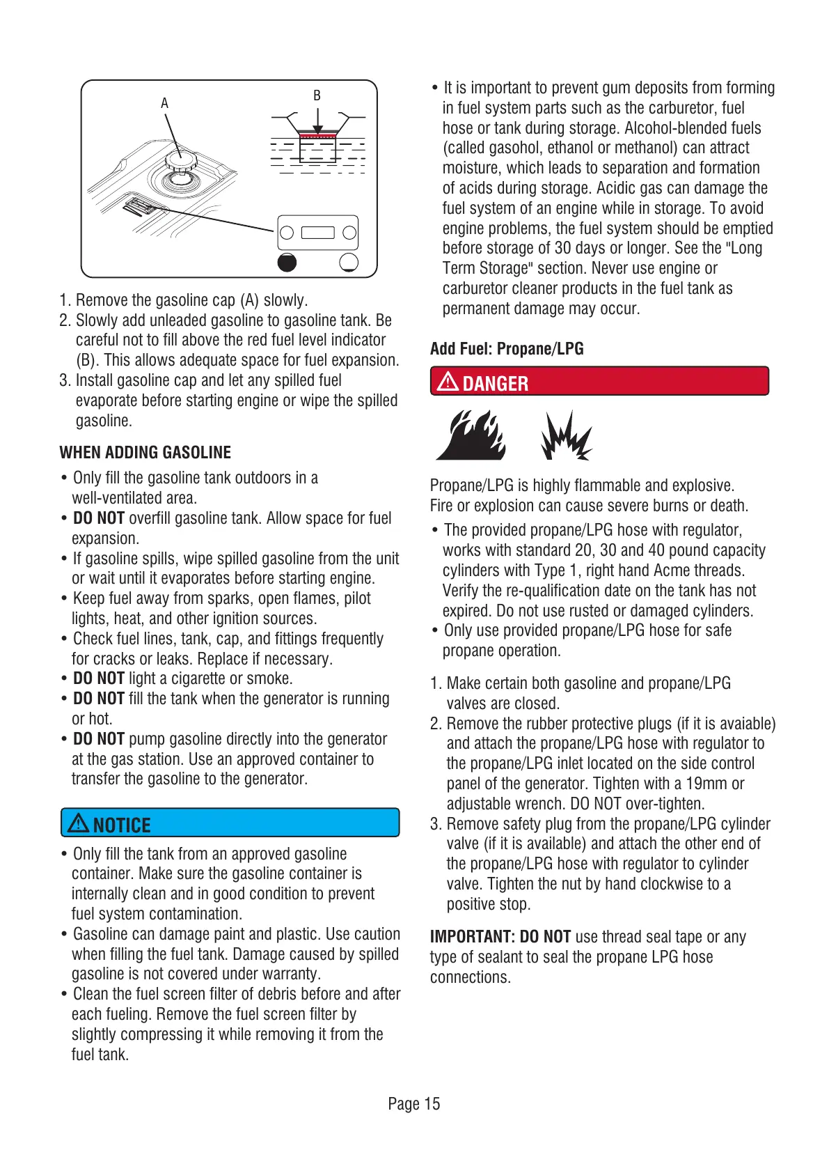 1. Make certain both gasoline and propane/LPG