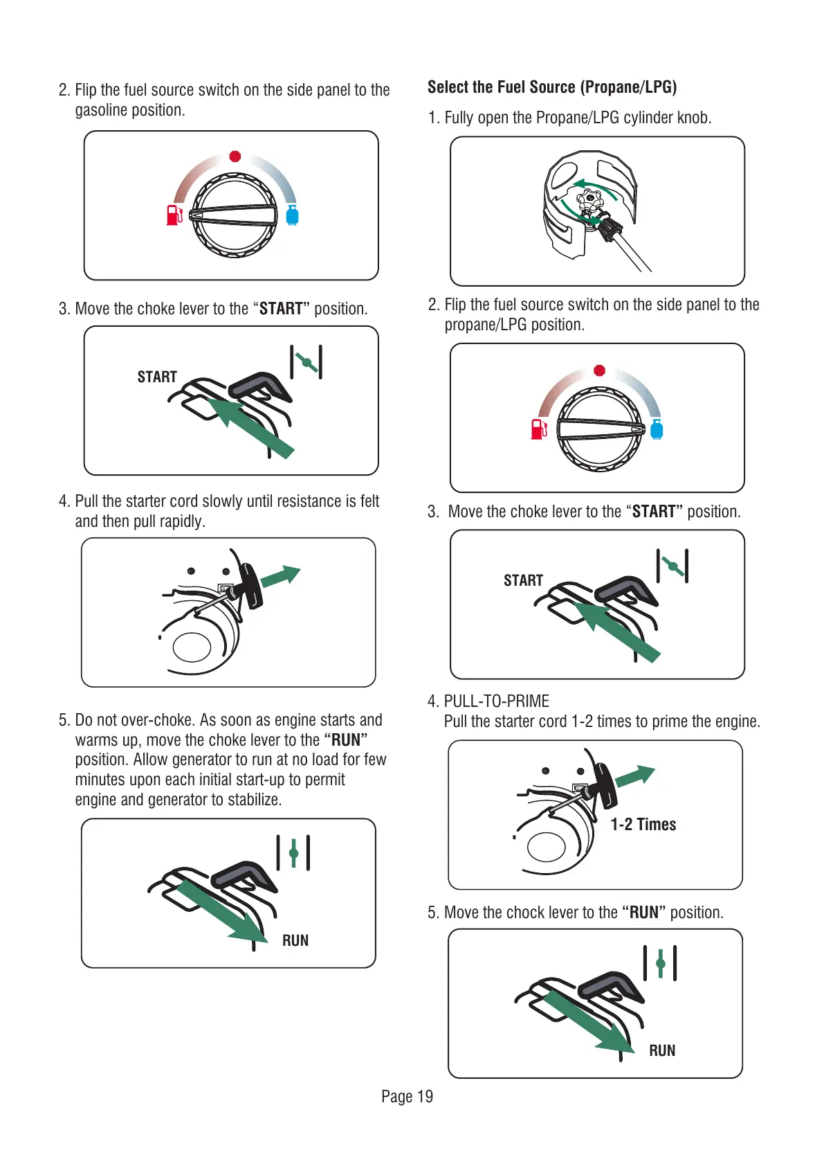 Select the Fuel Source (Propane/LPG)