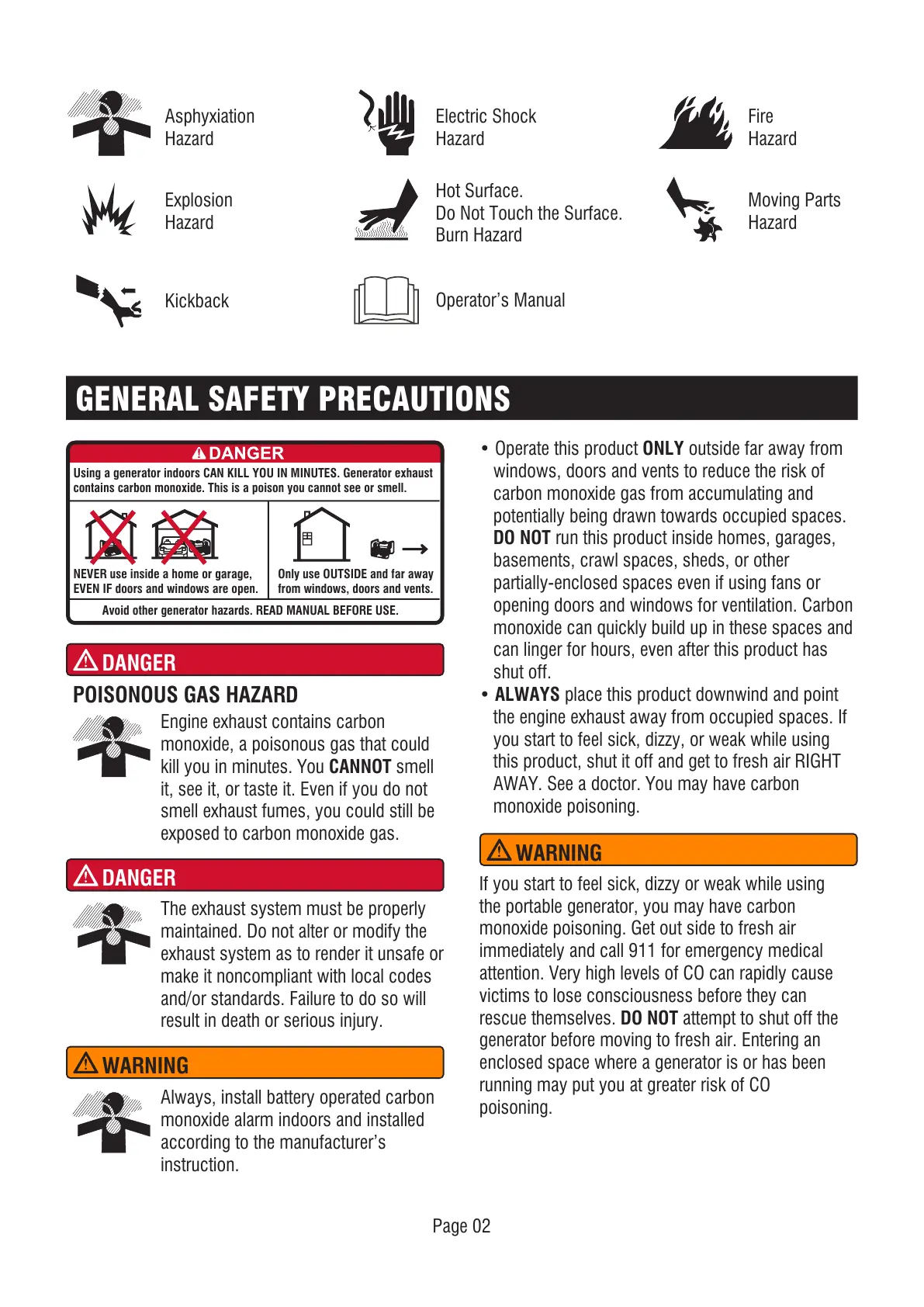 Avoid other generator hazards. READ MANUAL BEFORE USE.