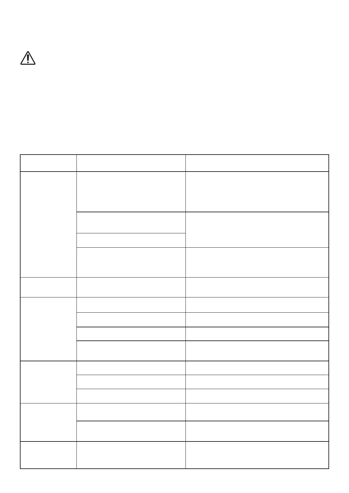 Fault Possible Cause Solution